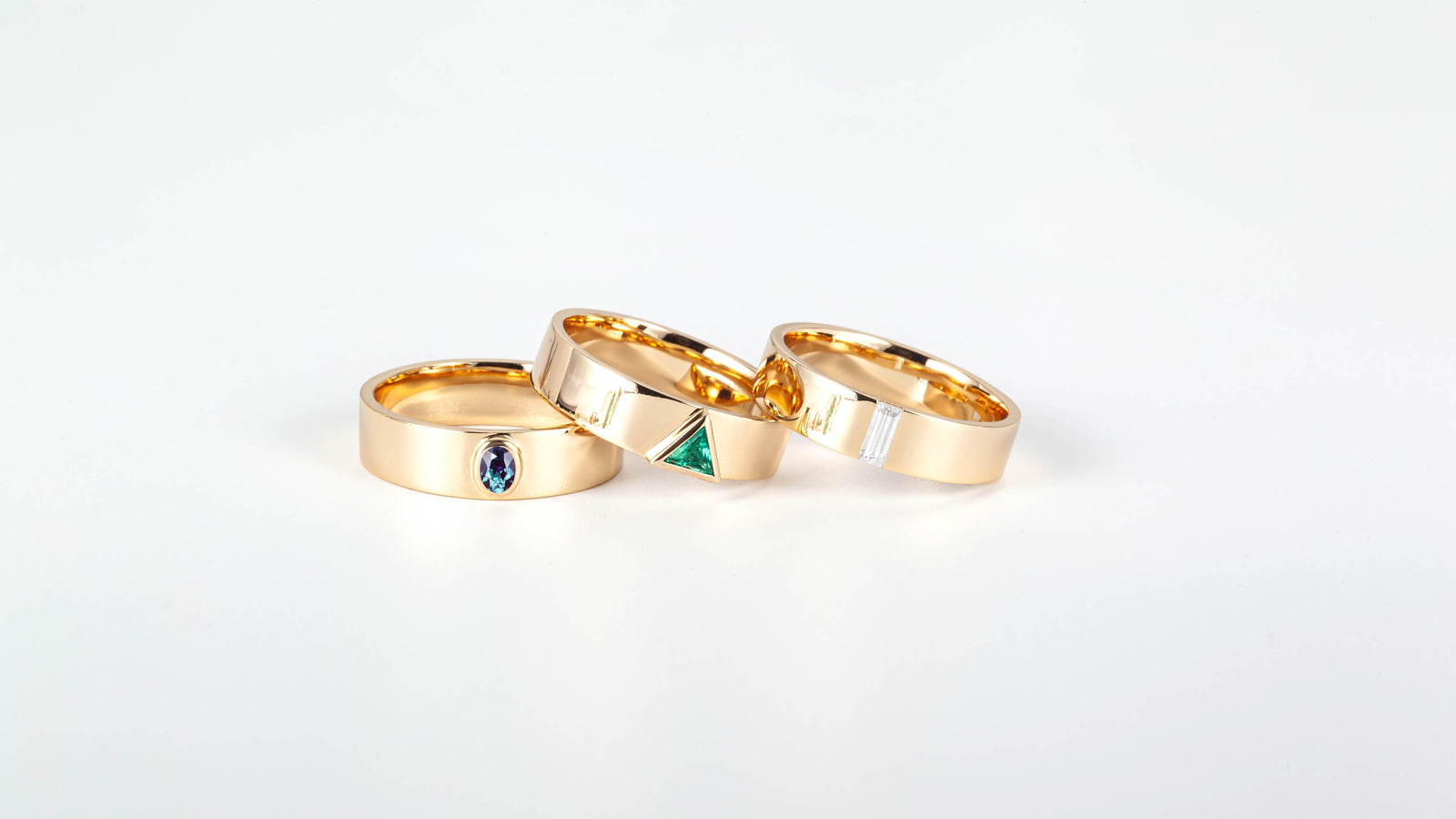 The Satra collection features a series of rings that combine beauty, versatility, and durability. These rings have no prongs that can snag on clothing or lose the main stone during travel. They also have solid body construction and colorful gemstones that reflect your personality.
